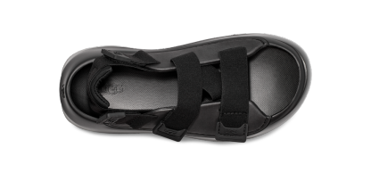- Adjustable heel strap, Adjustable instep strap, Hook-and-loop closure